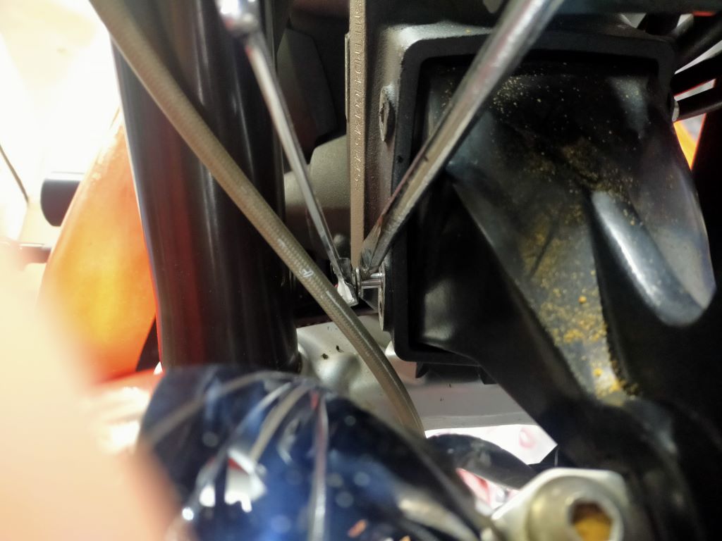 There is a bracket under the yoke that keeps the light and dash cables locked in. You dont have to remove this. Loosen it enough so you can ‘wiggle’ out the cables. You would have already disconnected the light cables to the main loom after the airbox was removed.