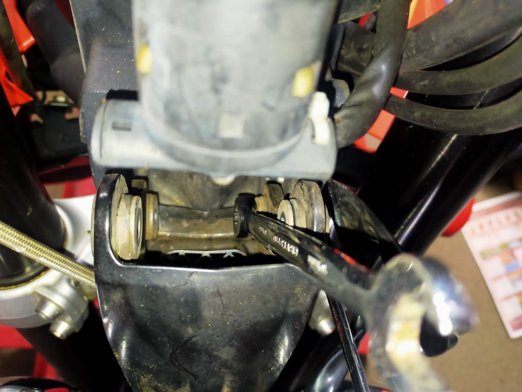 So off with the tank, followed by the airbox. The airbox had to come off anyway as the inner nuts from the stay disappeared in there somewhere.